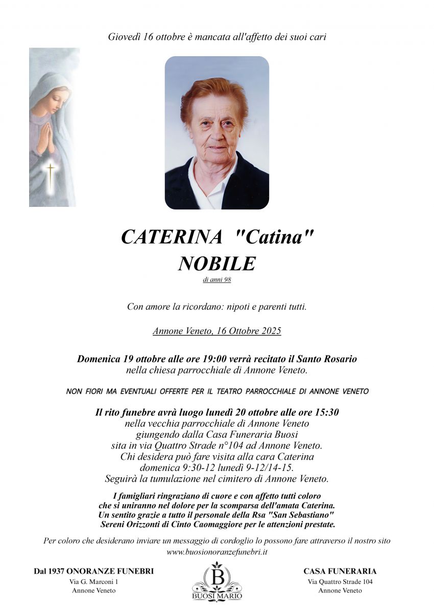 Lascia gratuitamente un messaggio di cordoglio, sarà nostra cura consegnarlo ai congiunti di Caterina Nobile.