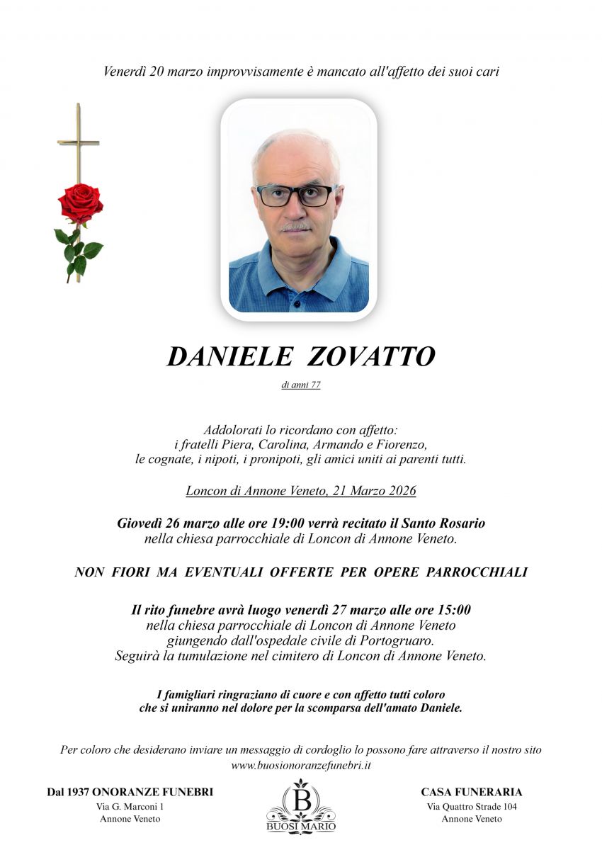 Lascia gratuitamente un messaggio di cordoglio, sarà nostra cura consegnarlo ai congiunti di Zovatto Daniele.